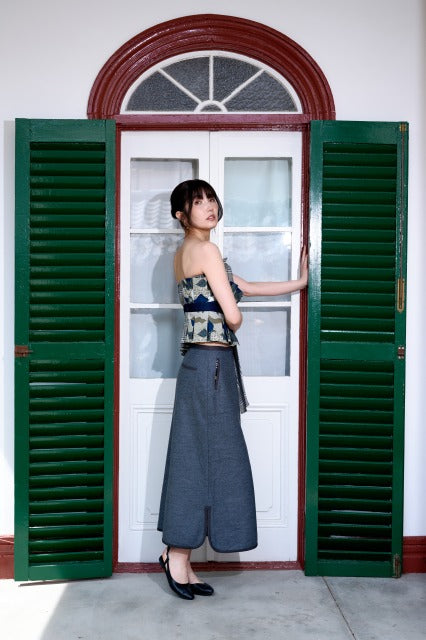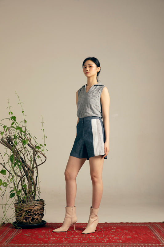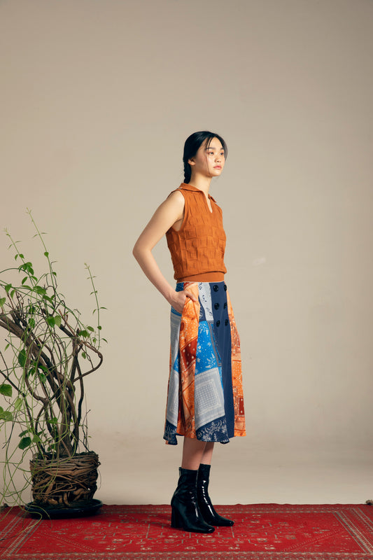 バイカラーバンダナ柄パッチワーク風オープンカラーシャツ