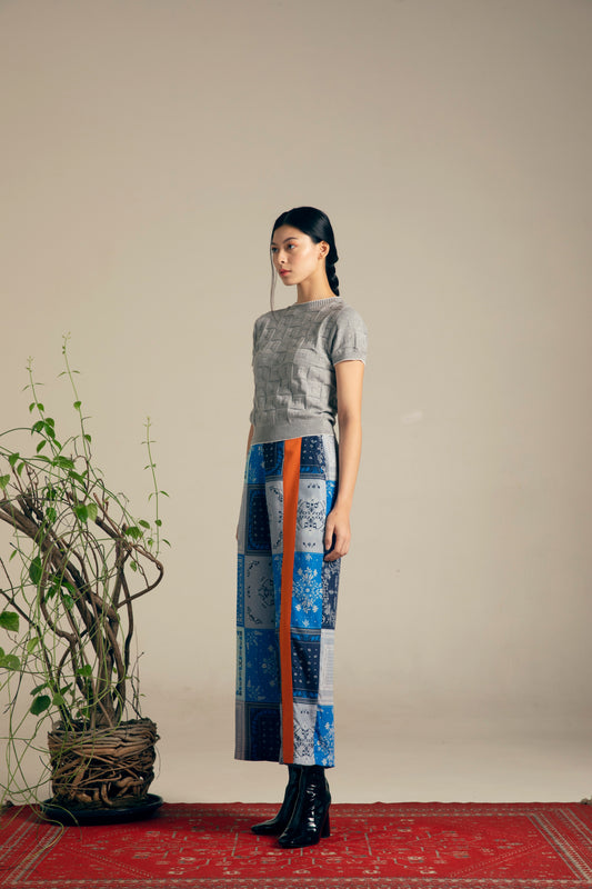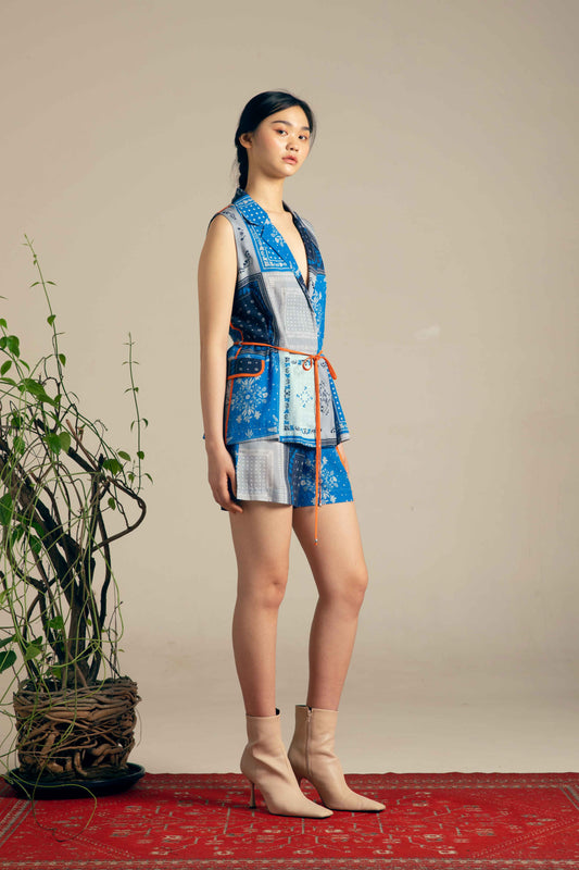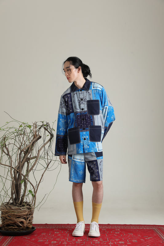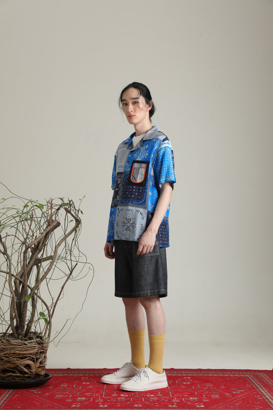 バンダナ柄パッチワーク風オープンカラーシャツ