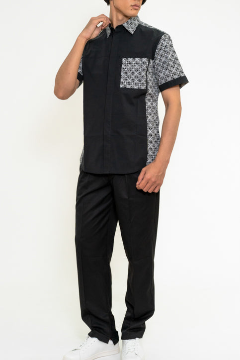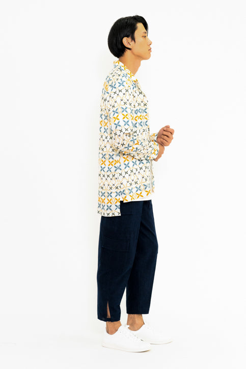 バティック柄ポケット付きシャツ