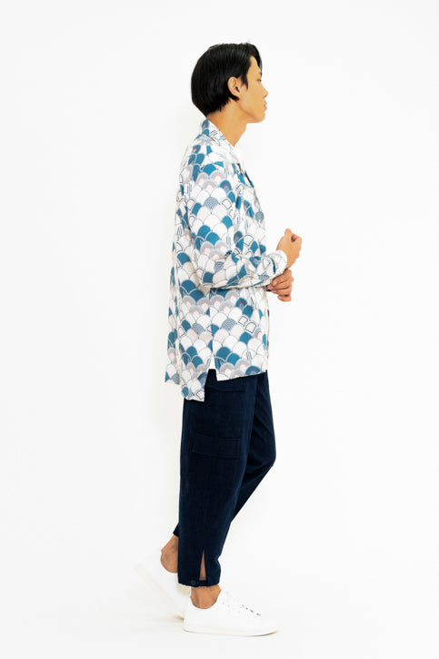 バティック柄サイドスリットスキッパーシャツ
