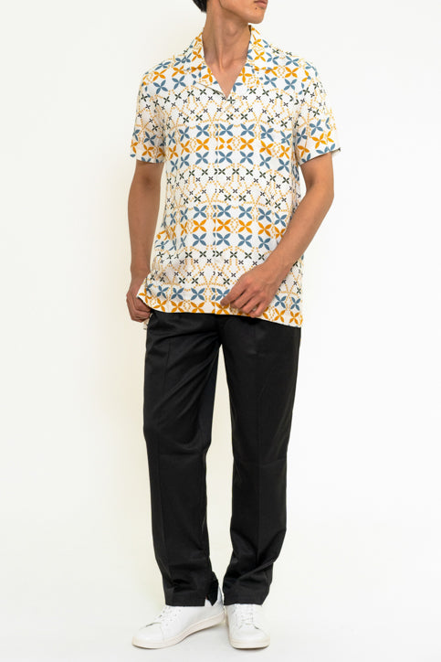 ジオメトリックプリント半袖シャツ