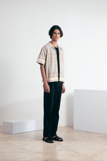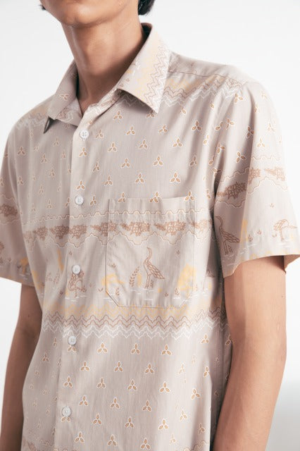 バティック柄オリエンタルシャツ(カーキ)
