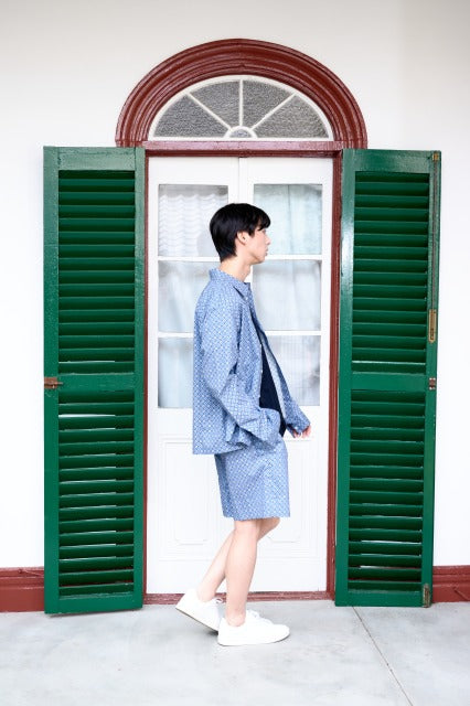 バティック柄オリエンタルシャツ(ブルー)