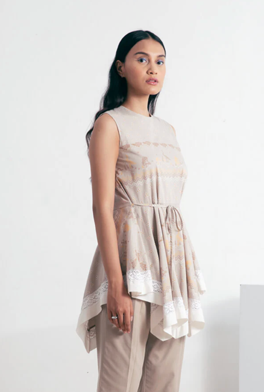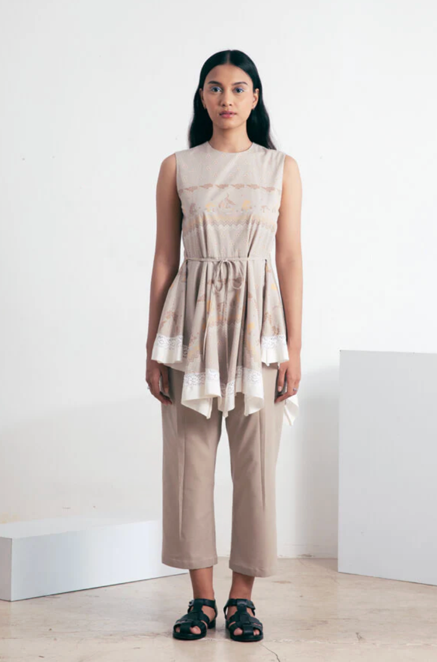 ウエストのドローストリングでシルエットを調整でき、女性らしいラインを演出します。