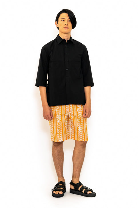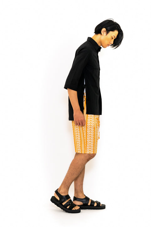 鮮やかなオレンジをベースに、リーフモチーフが印象的なショートパンツ。