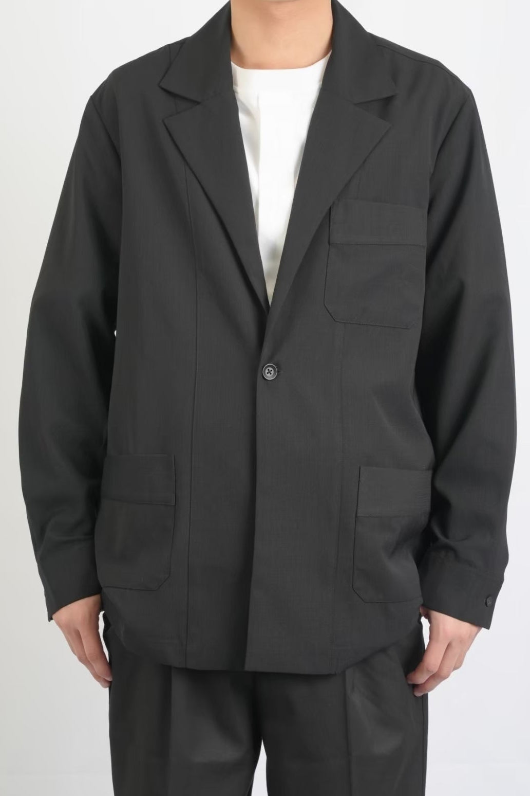 Tシャツの上に羽織るだけで、上品かつモダンな印象に仕上がります。