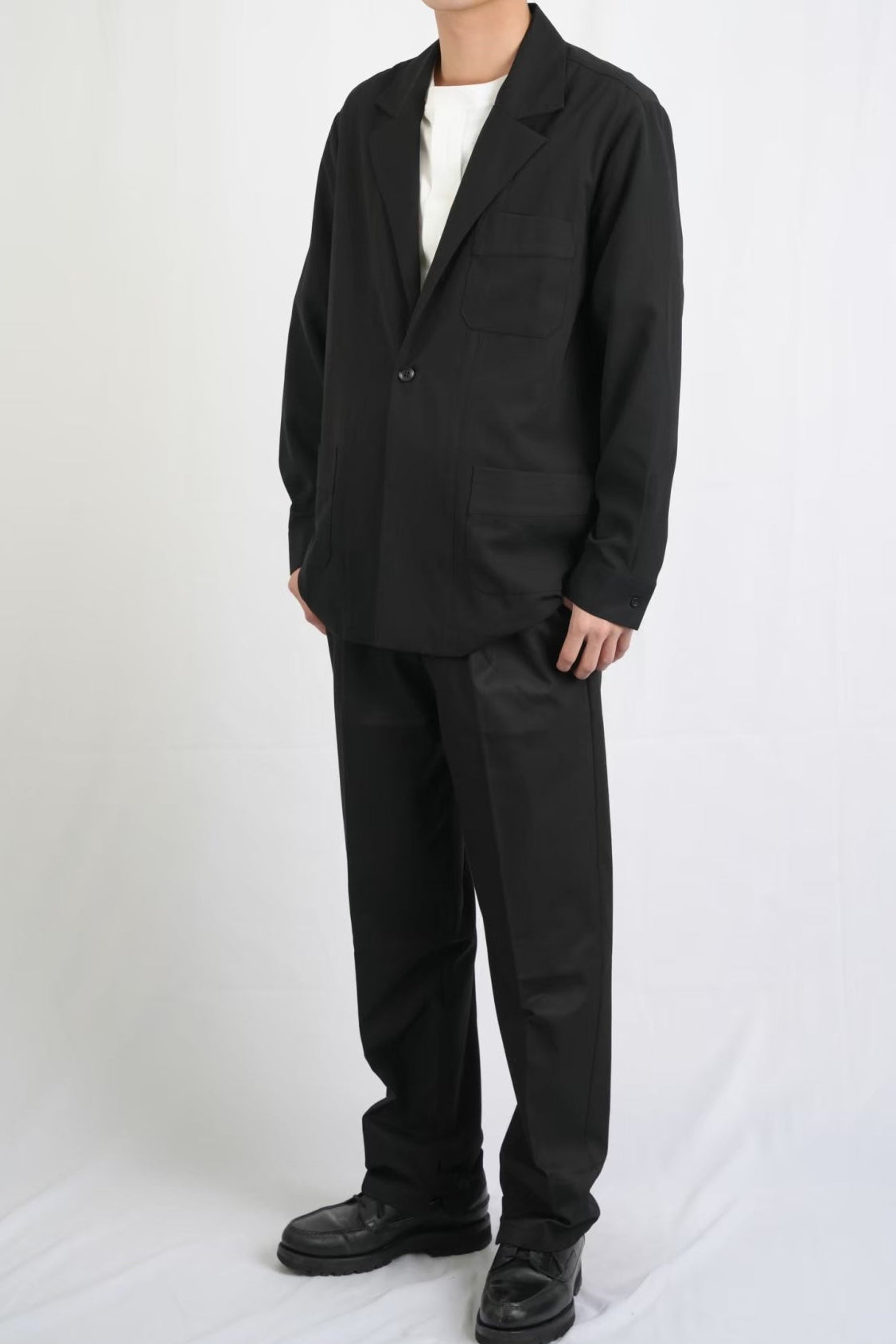 ミニマルなデザインながらも立体感のあるシルエットが魅力のテーラードワークジャケット。