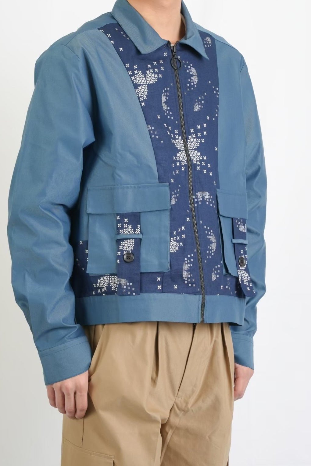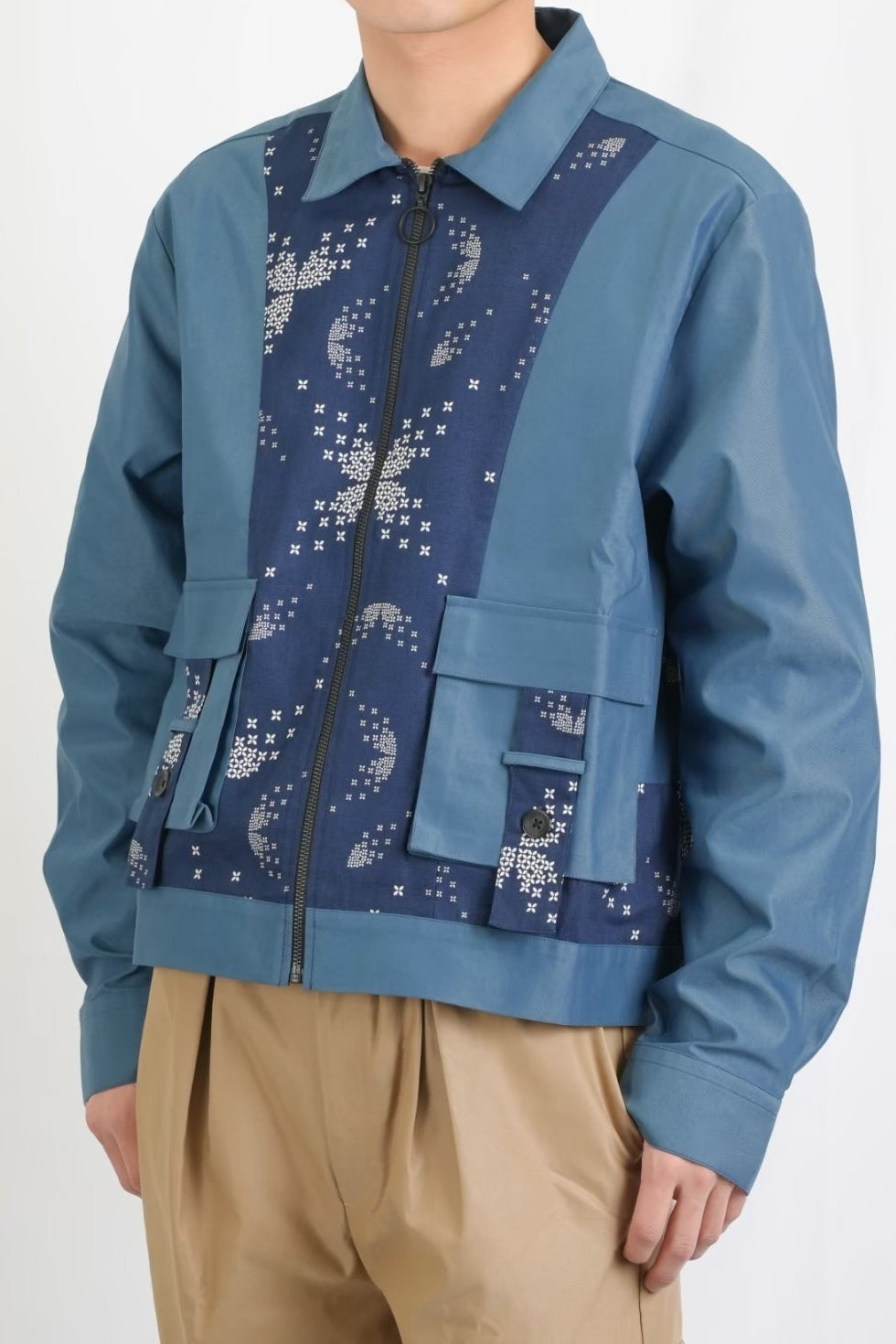 伝統的なバティック柄とワークジャケットの要素を融合させた、個性あふれるチノジャケット。