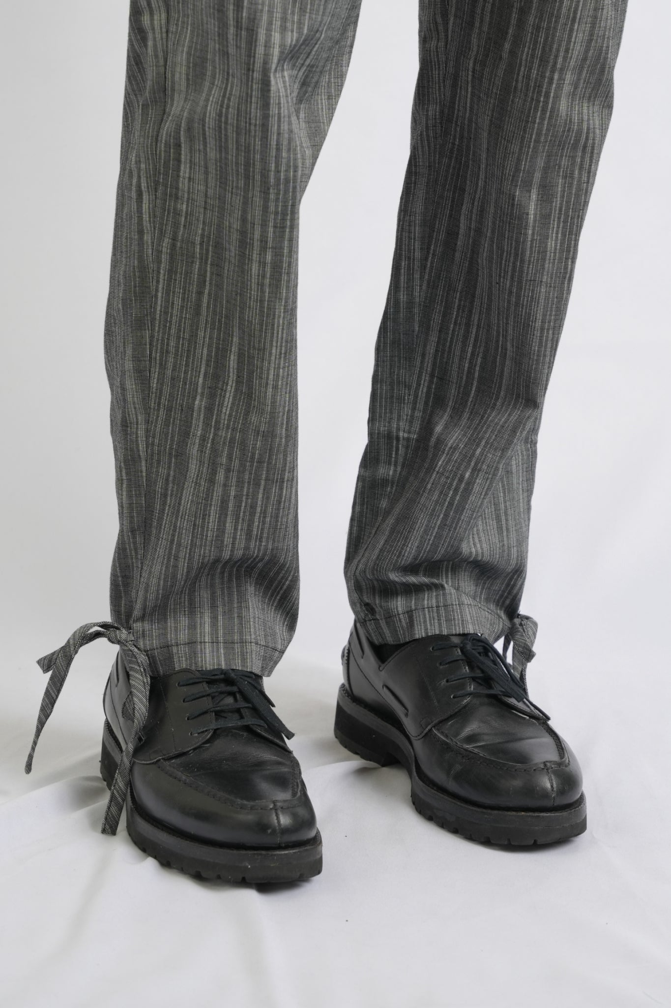 裾にリボン仕様のドローコードを施し、結び方によってシルエットを調整できます。