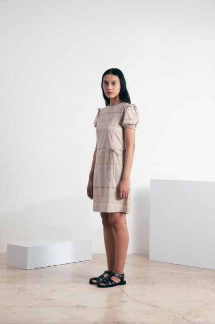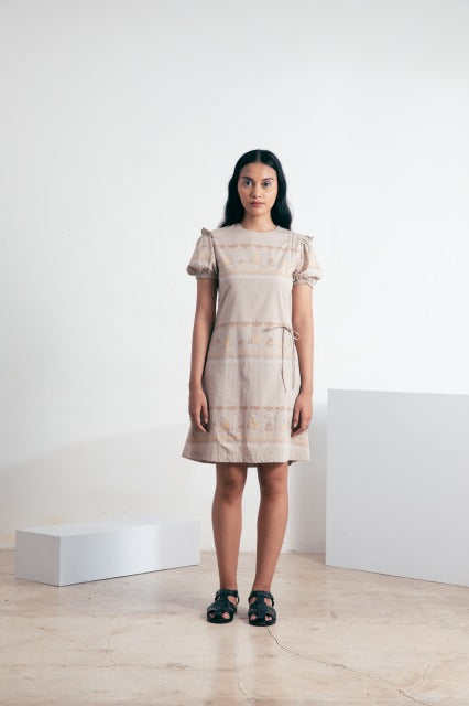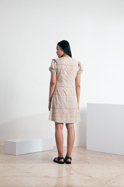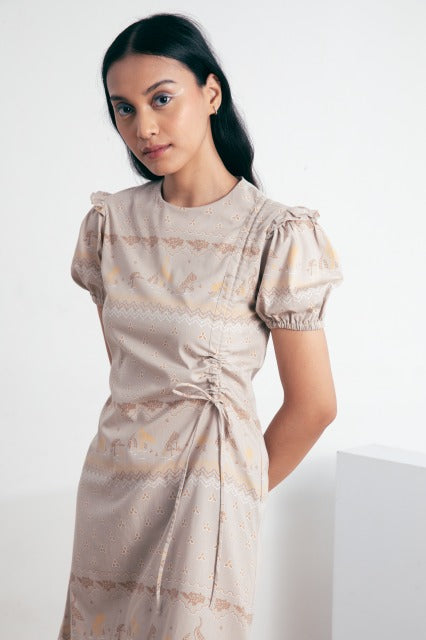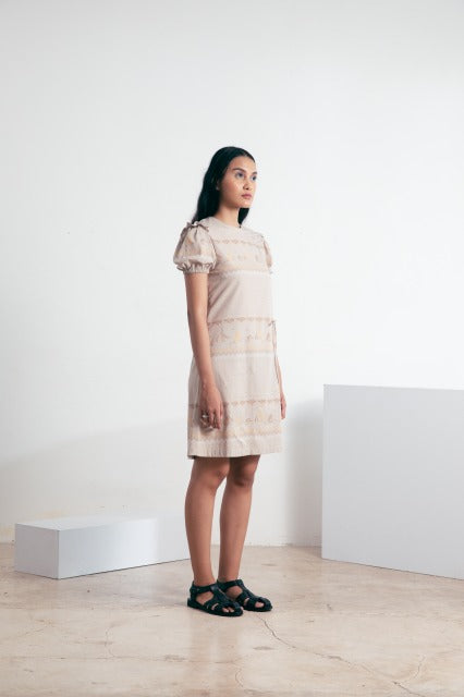 短めのパフスリーブが愛らしさをプラス。袖口にギャザーが施され、ふんわりとした立体感がポイントです。