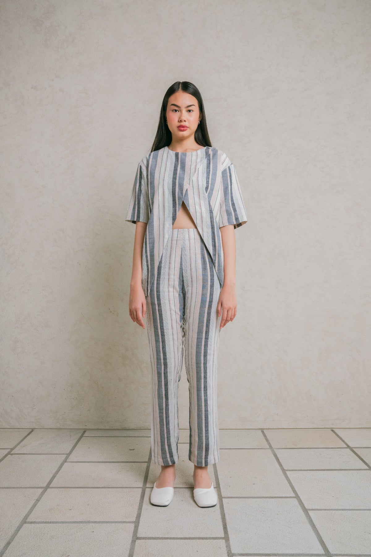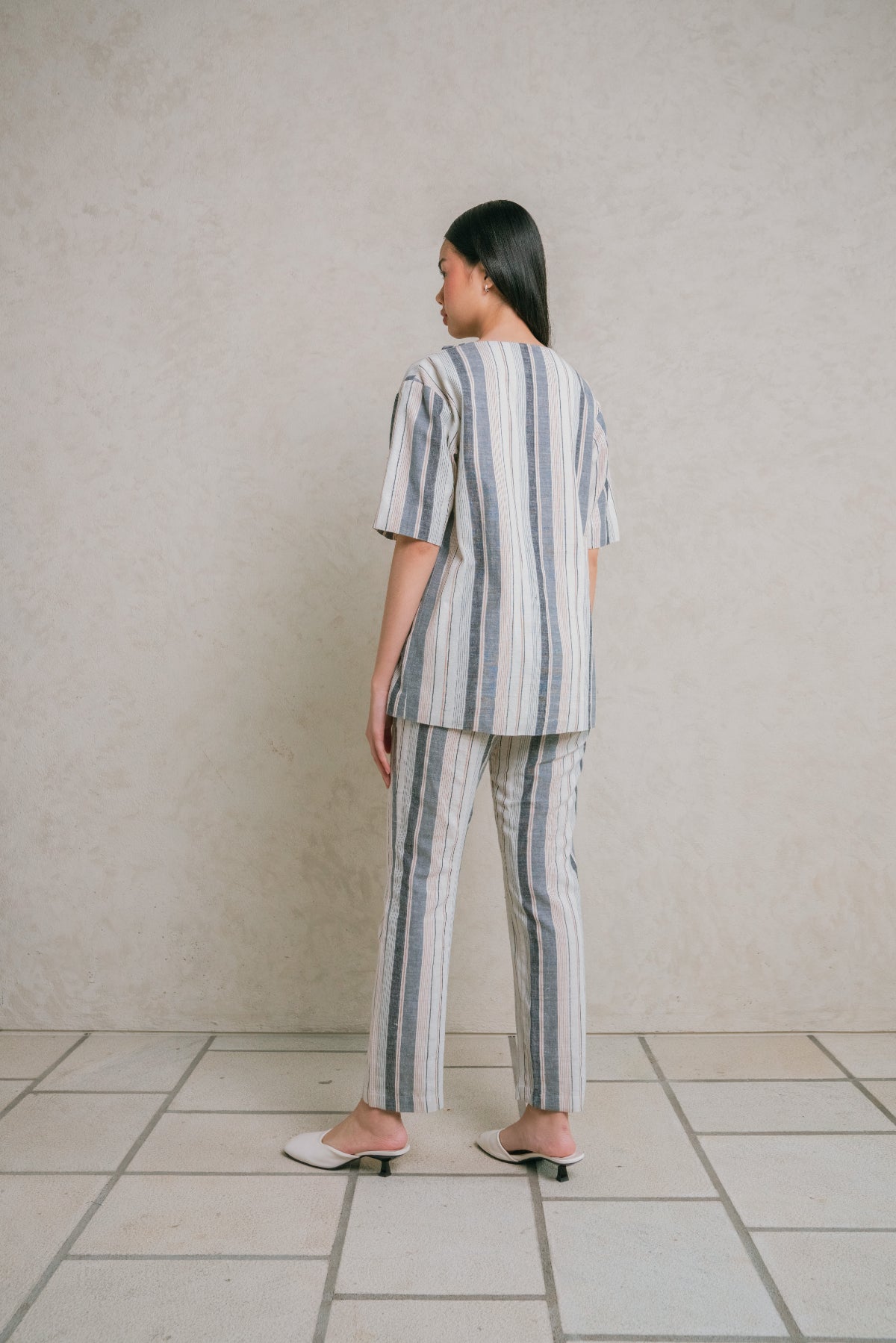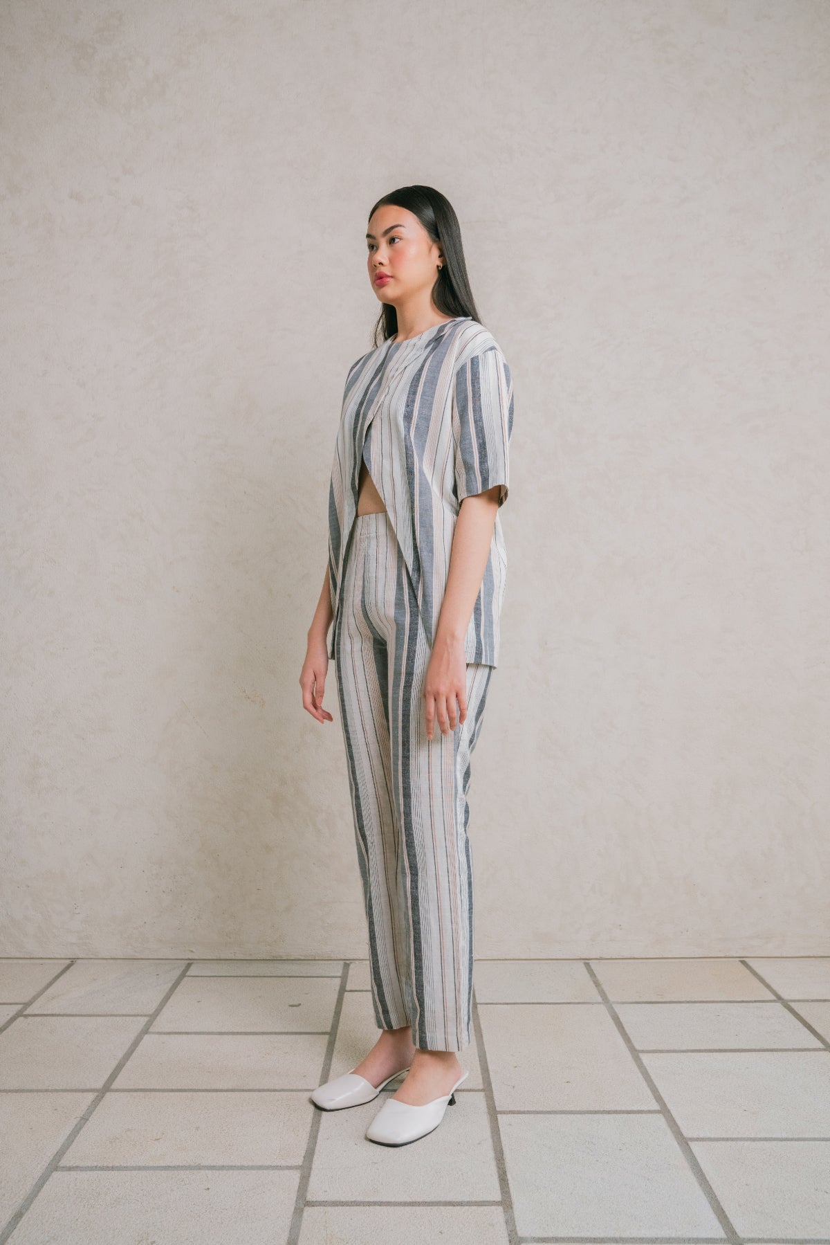 通気性の良いコットン素材を使用した、軽やかな履き心地のストライプパンツ。