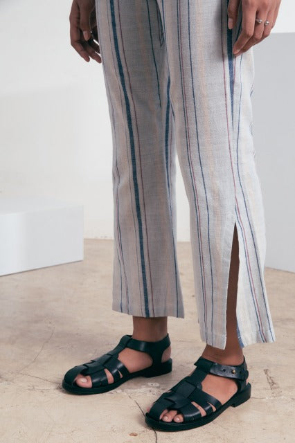 裾に向かってわずかに広がるセミフレアデザインが特徴です。クラシックなストレートパンツに遊び心をプラスし、トレンド感と抜け感を演出します。