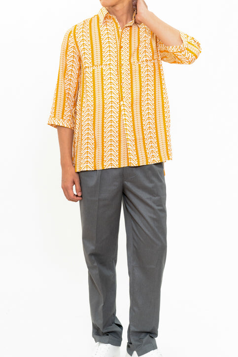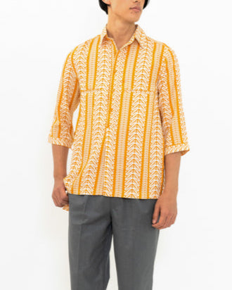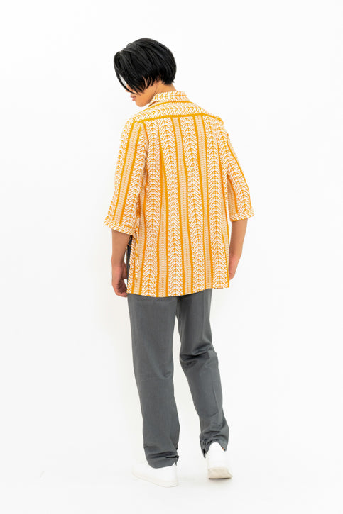 爽やかなイエローカラーを基調とし、繊細なバティック模様が施されたデザインが印象的なシャツ。